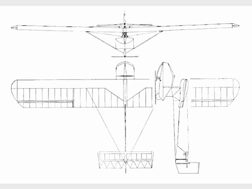 | Infos techniques | Tragwerk: abgestrebter Hochdecker in einholmiger Holzbauweise, zweiteiliger Rechteckflügel mit gerundeten Enden und konstantem Profil, Querruder außen zwecks Schränkung hochgezogen. Drahtverspannung zum Ober- und Unterteil der Seitenflosse. 1,5 ° VStellung. Rumpf: Geschweißtes Stahlrohrboot mit Sitzanordnung nebeneinander; Doppelsteuer. Im Vorderteil Kufe, hinter Leerschwerpunkt Laufrad. Leitwerkträger als Kastenholm ausgeführt, ohne Bodenberührung. Leitwerkträgerende als Seitenflosse ausgebildet. Leitwerk: Höhenleitwerk Rechteckform mit gerundeten Enden, zum Leitwerkträger. durch umgekehrte V-Stiele abgestrebt. Trimmung durch verstellbaren Bolzen. Stoffbespannt. Seitenruder ausgeglichen, Höhenruder ohne Ausgleich.Rumpf: Geschweißtes Stahlrohrboot mit Sitzanordnung nebeneinander; Doppelsteuer. Im Vorderteil Kufe, hinter Leerschwerpunkt Laufrad. Leitwerkträger als Kastenholm ausgeführt, ohne Bodenberührung. Leitwerkträgerende als Seitenflosse ausgebildet. | ||||||