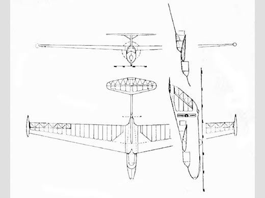 | Infos techniques | Empennage en T. Hélice propulsive. Masse à vide avec moteur de 30 CV. Vitesse de croisière 135 km/h. Taux de montée 1,8 à 2,4 m/s. | ||||||