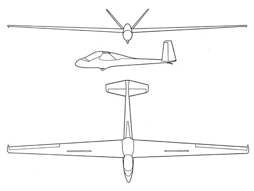 | Remarques | Spécifications techniques (The Worlds Sailplanes II) Masse à vide 155 kg (sans équipement) Masse maximale 275 kg Charge alaire 24.5 kg/m2 | ||||||