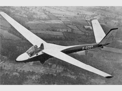 | Infos techniques | La voilure, qui utilisait à nouveau une série de profils NACA 63, était, comme celle des 901-904, monolongeron avec un caisson de bord d'attaque réalisé en sandwich contreplaqué/Klégécell , la partie arrière étant nervurée et entoilée. Il n'y avait pas de volets et les ailerons n'étaient pas "à fente". Les commandes étaient rigides dans la voilure et par câbles dans le fuselage. Les aérofreins ajourés sortaient perpendiculairement au profil. Le fuselage était réalisé en 3 éléments dont ceux de l 'avant et du centre étaient constitués d'une ossature de tubes d'acier soudés avec revêtement de plastique (polystyrène moulé et stratifié verre·résine), tandis que celui de l'arrière était une poutre moulée en sandwich contreplaqué/Klégécell. La pointe avant était réalisée en plastique et la verrière était une " bulle" de plexiglass montée d'une seule pièce. Cette conception , en éléments distincts, était supposée non seulement permettre le remplacement aisé de parties endommagées, mais encore le permettre avec primes de l'État (comme pour l'achat de planeurs entiers). Ceci ne fut pas accepté et il apparut que c'était sans grande utilité que l'on avait pénalisé l'appareil en poids et complication. L'atterrisseur, fixe, et caréné de plastique, comprenait une monoroue de 260 X 80. La nouveauté la plus visible était l'empennage "papillon", composé de plans fixes "en caisson" et de gouvernes classiques, monolongerons avec nervures en treillis, entoilées avec équilibrage par becs débordants. Ces 2 éléments étaient interchangeabIes. Empennage en V : Le V de cet empennage était fermé à 90° (angle pratiquement jamais utilisé jusque là au monde) pour résoudre le problème du bon contrôle au pied, et également pour être bien dégagé au sol lors des atterrissages en campagne. Les aérofreins, au début, interféraient avec cet empennage; cet effet malheureux disparut après qu'ils eurent été déplacés vers l'extérieur. L'équipement comprenait la radio et une alimentation en oxygène. Le démontage était une opération particulièrement aisée et rapide. les 2 demi-ailes et les 2 éléments d'empennage se séparaient du fuselage. Le coefficient à charge extrême atteignait 8 (contre 10 pour les Br-901 et 904, et 12 pour le Br-900). Empennage en V. | ||||||