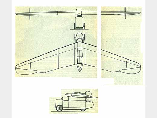 | Infos techniques | Premiers essais avec un moteur Daimler de 20 CV. Puis remplacement par quatre fusées à poudre de 90 kg de poussée pour le décollage et 10 kg pour le vol. | ||||||