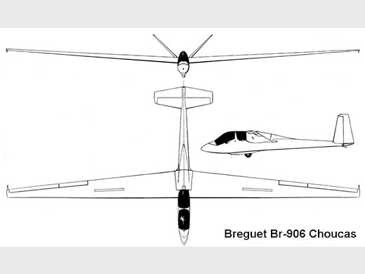 | Histoire résumée | Devant le succès d'estime remporté par le Br-905, notamment au Championnat du Monde de 1958, il fut décidé, en fin de cette même année, d'extrapoler un biplace de classe "standard" de ce monoplace, ainsi qu'il avait été fait précédemment pour le 904, issu du 901. Le nouveau planeur fut désigné Br-906 et nommé "Choucas". Le Br 906-01 effectua son premier vol le 26 octobre 1959, piloté par Bernard Witt (il fut immatriculé F-CCGP). Ses essais coïncidèrent malheureusement avec la décision que prit la direction de Breguet d'abandonner son activité dans le domaine des planeurs. Simultanément une commande de 100 exemplaires de série du " Choucas" était annulée par l'État. Le prétexte officiel fut le prix trop élevé de ces machines. On avait, certes, rencontré des difficultés technologiques avec les Br 905 et 906, comme il est coutume avec toute nouvelle machine volante. Mais des inimitiés personnelles semblent avoir pesé au moins aussi lourd que ces difficultés, et que la visible lassitude du constructeur, lors de cet abandon d'un planeur très réussi par les Services Officiels. Breguet interrompit tout travail sur un Br 906-02. Ce second prototype fut cédé à la CAARP qui le modifia en remplaçant le fuselage d'origine par une coque d'un seule pièce. en sandwich contreplaqué/Klégécell. Cette transformation permettait de simplifier et alléger le planeur, rebaptisé "Choucas II". Pratiquement complet, il ne fut jamais monté. et ne vola donc jamais, pour d'obscures raisons... Et pourtant la CAARP avait envisagé de développer toute une gamme de "Choucas" (III, IV, V, etc) d'un "Choucas Il" qui semblait prometteur ! | ||||||