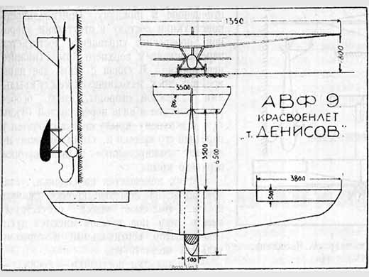| Histoire résumée | Planeur d'entraînement intermédiaire monoplace. Construit à Moscou en 1924, il est nommé en l'honneur de l'un de ses créateurs, V. F. DENISOV, qui s'est tué dans un accident de vol avec le DH-4 au cours de l'été 1924. Sous la direction de M. N. RODIONOV, ses amis poursuivirent la construction du planeur. Piloté par N. A. KAMARNITSKY le dernier jour du II VPI, il démontre une bonne maniabilité, stabilité et contrôlabilité en vol. V. F. DENISOV a reçu à titre posthume une haute mention pour ce planeur. |