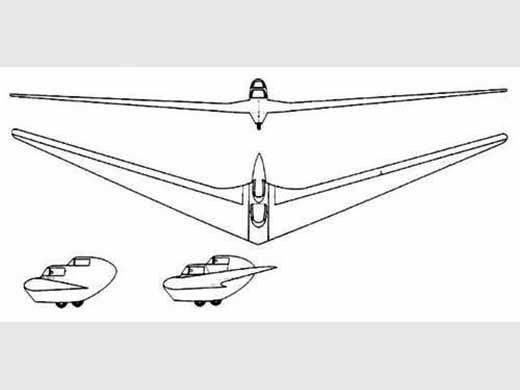 | Infos techniques | Longueur du fuselage : 3,50 m; velocidad de aterrizaje 60 Km/h; velocidad máxima en tiempo recorrido 120 Km/h; relación de planeo monoplaza 27,5 a 67 Km/h; relación de planeo biplaza 28,5 a 75 Km/h; carga útil 200 Kg; carga alar biplaza 25 Kg/m²; este planeador cuya flecha de ala era de 22° 40 min al 25% de la cuerda y relación de ahusamiento: 1:5, fue diseñado para el entrenamiento en clubes de planeadores. | ||||||