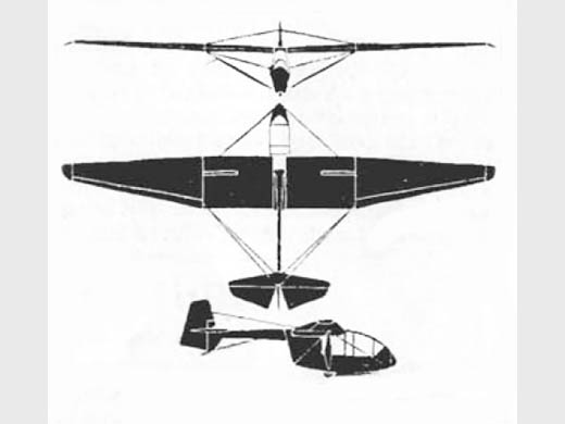 | Infos techniques | The "Komar" ("Gnat") is of pod-and-boom type and is a high-wing monoplane of wooden construction, the end of the boom forming the rudder king-post. Four wires attached to the outer edge of the wing centre-section ensure the rigidity of the boom and the horizontal position of the tailplane. There are also two wires bracing the nose to the wing strut anachment point. Seating is in tandem under a long canopy with no step-·up. The rear pilot's seat is under the wing and, though he has good visiblltty, his access to the cockpit is far from easy. He enters through a small door under the wing and above the undercarriage forging, and his access is hindered by the bracing and by the narrowness of the opening. This could be remedied by sweeping the wing forward and moving the wing attachment back to behind the bulkhead aft of the rear seat. an alteration which would probably improve the aerodynamic qualities too.