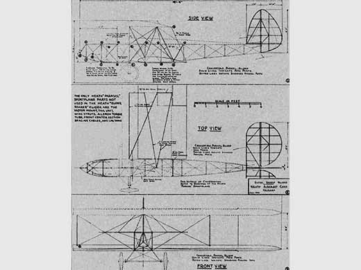 | Autres sources | The Heath "Super Soarer" Glider, Flying and glider manual 1932. 2 articles + dessins + plan 3 vues. Looping the loop in a glider, par Ed Heath, source inconnue. Texte + dessins + photo. Soaring mars-avril 1957 p 15. Note + Photo. Looping the loop in a glider, Popular Aviation, août 1930. Texte + 2 photos. |