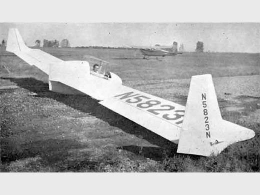 The previous lack of directional stability had required the pilot to be on his toes all the time. To rectify this situation the fuselage length was increased bv 9 inches and the hood given a dorsal fin look. A new and larger set of fins were constructed which replaced the drag flaps with differential rudders of double the previous area. Also, the independently operating rudder pedal gave way in favor of the conventional setup. During previous take-offs I often found myself sitting there with both rudder pedals depre ed, which added drag besides being disconcerting. |