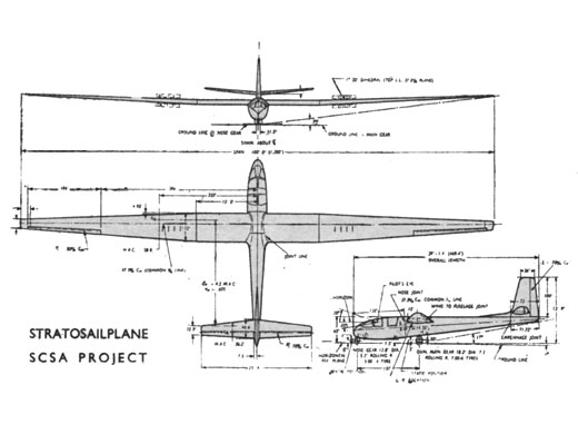 | Autres sources | Le projet américain de planeur stratosphérique, Aviasport No 36, Mai 1957, p.77-82, Texte + specs + 3-vues Sailplane and Gliding, volume 8 n° 1, février 1957 p 38. Mention. The Stratosailplane revisited, par V.M. Saudek, Soaring juin 1974, page 26 |