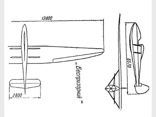 | Histoire résumée | Ce planeur a été construit en 1933 à l'initiative et sur un avant-projet de GRIBOVSKY. Le développement a été mené par une équipe du bureau d'études TsS Osoaviakhim, dirigée par G.F.TROSHEV. N'ayant pas le temps de terminer complètement la conception pour la 9ème réunion de vol à voile de Koktebel, l'équipe n'a pas utilisé l'aile qui avait été conçue à l'origine, mais une aile toute prête provenant d'un planeur de production Antonov "Upar". L'appareil a reçu son surnom de "Homeless Boy" ["Sans-Abri"] en raison de l'absence d'un certain concepteur, qui aurait pris soin de sa construction rapide. Il existe également une autre version de l'apparition du nom original, qui raconte la longue errance du planeur sur le chemin de fer en direction de la Crimée. Le nom curieux donné à ce planeur vient de ce que le concepteur ne trouvait pas d'organisme qui veuille mener à bien la construction dans des délais raisonnables. Gribovsky, occupé par la préservation de l'IBC, ne pouvait pas consacrer suffisamment d'attention à l'appareil en construction à l'époque, il ne lui a donc pas donné son numéro de conception suivant, bien qu'il n'en ait pas nié la paternité. Lors du 9ème rallye de l'aérodrome de Koktebel, le "Homeless Boy" a eu le plus long temps de vol de tous - 62 heures et 30 minutes. Après le rallye, le planeur a été remis à l'École supérieure de vol et de vol à voile (VLPSH), où il a été utilisé pendant longtemps pour former les pilotes de planeurs. Les événements de 1933 pour Vladislav Gribovsky sont marqués par des succès, mais aussi par de nouveaux problèmes d'organisation. Au début de l'année, l'ICB est fermé, mais Gribovsky réussit à le faire réintégrer à son ancien emplacement et en redevient le directeur. L'ensemble du personnel, à l'exception du chef, se compose de deux concepteurs et de trois dessinateurs. La petite mais sympathique équipe du bureau d'études, où les designers V.V. ABRAMOV et B.K. LANDYSHEV sont ses plus proches assistants, travaille de manière très fructueuse. En 1934, ils conçoivent un planeur biplace de voltige et de remorquage G-14, un planeur de sport G-15, un hydroplane G-16, un planeur de record G-17, un planeur modifié G-13bis, et commencent également à travailler sur la première version de l'avion "Duck". Mais ces machines devaient encore être construites en différents endroits, faute d'une base de production interne. | ||||||