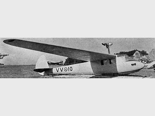 Planeur CVV-6 Canguro motorisé avec un moteur bicylindres flat-twin Ambrosini P.25 de 23 CV. Le moteur est monté sur un pylône fixe. L'hélice bipale est propulsive.