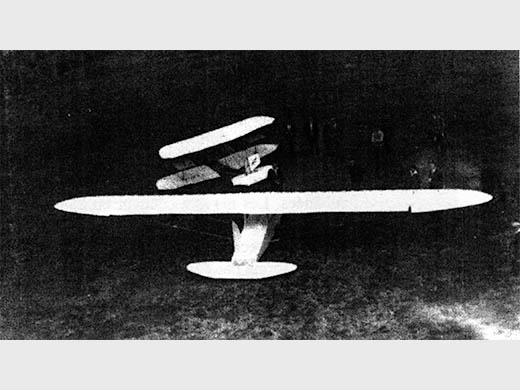 Fuselage à revêtement en contreplaqué. Train d'atterrissage formé de deux roues de remorque à moto.
