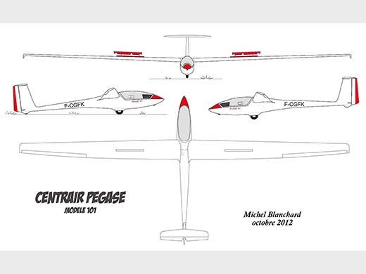 | Liens WEB | Site : Wikipedia . Historique + photos + specs. (2012-10-20 CL) Site : CVVFR . Historique + photo + specs. (2012-10-20 CL) Site : Airport Data . Liste des productions de la société Centrair. (2012-10-20 CL) Site : Sailplane Directory . Note + specs. (2023-12-06 CL) Site : S. N. Centrair . Pégase. Tableau de composition illustré. (2023-12-06 CL) |