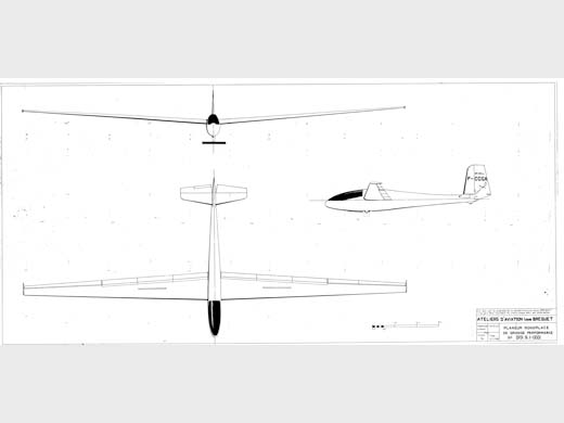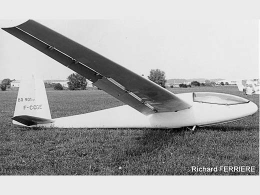 | Histoire résumée | Les 8 appareils de cette deuxième série de Br-901 (1958) furent redesignés Br-901 S1. Leur prototype avait été le 901-04. Les immatriculations F-CCGA à F-CCGJ ont été attribuées aux Br-901 S1 (n° 30 à 39) en 1958. II exista d'autres prototypes du Br-901. Furent ainsi modifiée par le S.F.A. (Saint-Cyr) en 1961-62 un Br 901-05, avec aile caissonnée et avec volets sans fente, puis un 06 également modifié avec une aile construite en caisson, et des ailerons à fente. Ces 901-05 et -06 avaient été spécialement réalisés pour les Championnats du Monde de 1960 (par Breguet en ce qui concerne le 06 seulement). Pour le Championnat du monde de 1963, un dernier prototype, le 07, fut obtenu en utilisant la voilure du S n° 15. Il fut immatriculé F-CCHO (CdN du 25/01/1963). II fut un moment en tête du classement de ce Championnat, piloté par P. Henry. Il possédait des ailerons sans fente et un train complètement escamotable, avec des trappes se fermant. Il faut signaler que le n° 15 ainsi privé de voilure, re-vola par la suite, en utilisant celle du 02. Ceci en dépit des problèmes de compatibilité ailes-fuselage d'un planeur à l'autre parfois signalés ! | ||||||