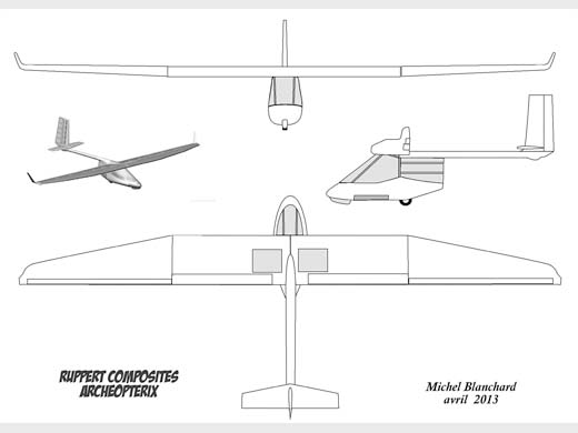 | Liens WEB | Site : Ruppert Composite . Site du constructeur. (2013-04-04 CL) Site : The Swiss Family Luijten-Bühler Website . Page de l'Archeopteryx. Photos. (2013-04-04 CL) Site : Wikipedia (en) . Texte + photos + specs. (2013-04-04 CL) Site : Nouvo.ch . Texte de présentation + vidéo. (2013-04-05 CL) |
