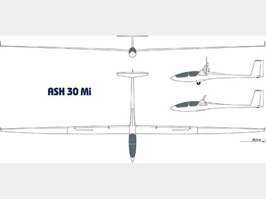 | Histoire résumée | L'ASH-30 est un biplace de classe Open, remplaçant l'ASH-25. Le premier vol a eu lieu à la Wasserkuppe le 7 avril 2011. | ||||||