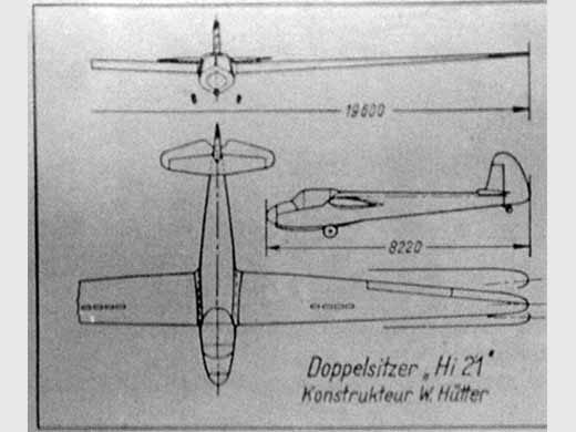 | Histoire résumée | La conception du Hi-21 a commencé en 1942, pour répondre à une demande de planeur d'entraînement multi-usage du RLM. Le premier vol eut lieu le 4 mai 1944. Le 7 juin, il fut sérieusement endommagé par un ingénieur du RLM. Après la fin de la guerre, il fut réparé dans l'atelier de Nabern et utilisé intensivement par les troupes américaines d'occupation (14000 lancés au treuil en 18 mois, à la fin de 1946). Plusieurs variantes ont été étudiées, comme celle de Wolfgang HÜTTER, monoroue non rétractable, plus légère et de plus petite envergure. Et aussi Karl SCHEWEYR et Ferdinand SCHMTZ, avec leurs versions à aile haute et atterrisseur démontable, ou aile basse et roue rétractable. | ||||||