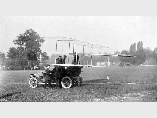 | Histoire résumée | [Traduction The Aero 1909-06-01] Le planeur Duhanhy-Suthy, récemment essayé en France, rendu captif d'une automobile. L'aéronaute, lorsque la machine est au repos, s'assied sur le dossier du siège arrière de la voiture, d'où il est tiré lorsque la vitesse obtenue par la voiture est suffisante pour que le planeur puisse supporter son poids. | ||||||