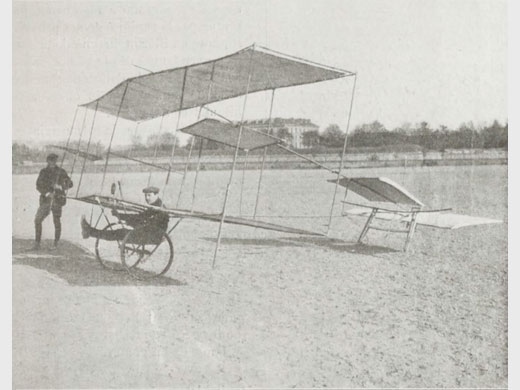 | Infos techniques | Ce planeur biplan avait des ailes constituées de deux toiles tendues entre deux simples armatures. Il y avait des ailerons entre les deux ailes, fixés aux haubans à l'extrémité avant des ailes. L'empennage était fixé sur une paire de fins longerons. La dérive, épaisse et courte, était montée sur le longeron supérieur, et le stabilisateur rectangulaire sous le longeron inférieur. Le pilote était assis sous l'aile inférieure entre les deux roues, sa tête et ses épaules dépassant des ailes. L'appareil, conçu pour être remorqué par une automobile ou lancé dans une pente, aurait effectué des vols de 100 mètres. | ||||||