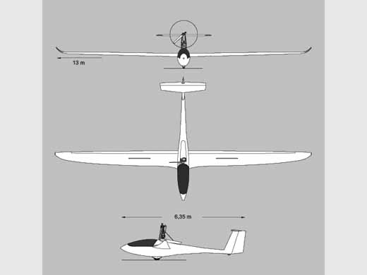 | Infos techniques | Facteurs de charge :+5.3 g / -2.65 g (à 150 km/h à 300 kg) +4.0 g / -1.5 g (at 220 km/h at 300 kg) Taux de montée au moteur : 2,5 m/s Moteur sur pylône rétractable. Moteur : "Alisport A302efi" 28 CV monocylindre, refroidissement par air. Empennage en T. | ||||||