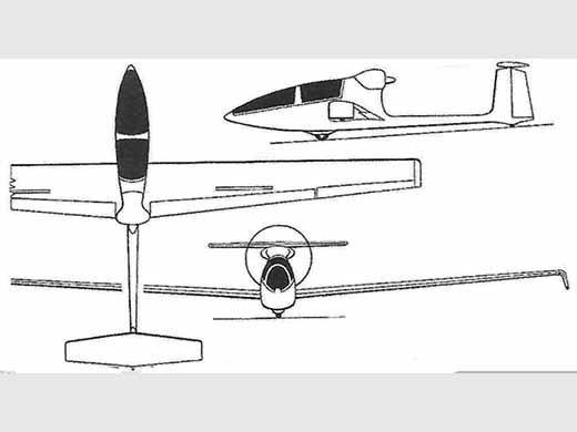 Monoplan cantilever à aile médiane, avec fuselage à nacelle et poutre, et empennage en T. Construction en matériau époxy stratifié, avec poutre de queue et autres zones renforcées en Kevlar. Monoroue non rétractable semi-encastrée, roulette de queue et roue d'équilibrage à chaque extrémité de l'aile repliée.