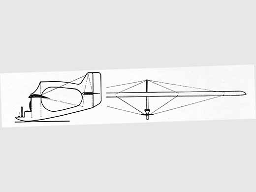 | Infos techniques | "Cet appareil est une réalisation de poutres en caisson, faites pour recevoir une voilure de grande dimensions et de forte sustentation. L'aspect particulier de cette poutre est néanmoins très classique. Larges raccords de la surface du patin avec le caisson support siège pilote et attache de voilure. Le haubannage en cordes à piano nécessite une cabane dans le prolongement de laquelle se trouve la barre supérieure de poutre d'empennage. Cette barre ainsi surélevée place la surface de dérive qu'elle comporte au dessus de la voilure et par conséquent lui donne une bonne stabilité qui s'ajoute à celle de la dérive et des gouvernes de direction qui se raccordent d'une manière très robuste. La surface de ces gouvernes se trouve avoir un certain allongement en hauteur augmentant le rendement