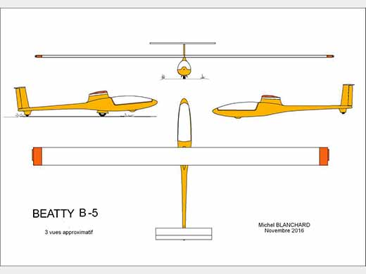 Travaillant désormais sans l'aide de Fritz Johl, le B-5 a été conçu pour être un planeur vraiment innovant ; peut-être que radical est un meilleur terme ! Afin de réduire la traînée d'interférence, les ailes étaient montées pratiquement à l'avant du fuselage et légèrement inclinées vers l'arrière. Pour placer le centre de gravité suffisamment loin vers l'avant, deux poids d'équilibre aérodynamiques étaient montés sur des bras à l'avant des ailes. La cambrure de l'aile pouvait être ajustée en vol, en déplaçant l'extrados de l'aile vers le haut ou vers le bas. Les ailes pouvaient ainsi
