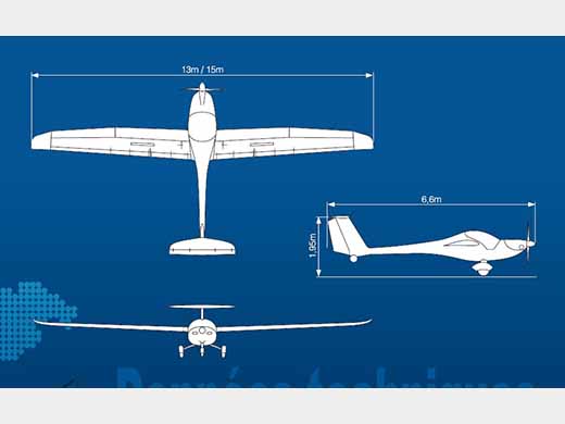 | Infos techniques | L’ULM Lambada est un biplace côte à côte, monomoteur, monocoque à ailes basses. L’aile est entièrement en matériaux composites et la structure du fuselage est réalisée en carbone. Les ailes sont assemblées en structure dite «sandwich» et les bords d’attaque des ailes sont en carbone. Les réservoirs intégrés aux ailes ont une capacité de 2x50 L. Le freinage est hydraulique . Depuis 2016 , les commandes d'aérofreins et des volets sont indépendantes l'une de l'autre. Cet ULM moto-planeur bénéficie des dernières technologies et d’une finition haut de gamme. Disponible en version tricycle ou train classique, les ailes peuvent recevoir des extensions de 1 m lui procurant une envergure de 15 m. | ||||||