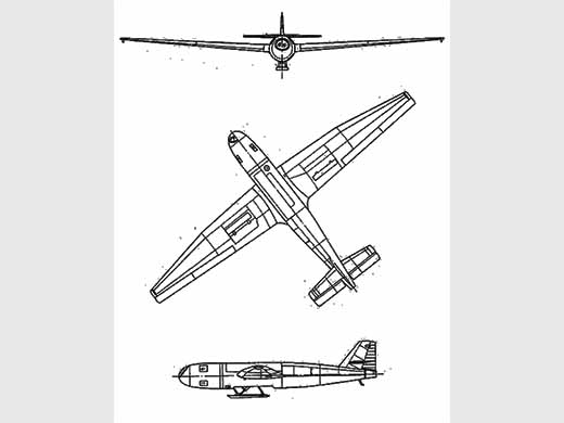 | Infos techniques | C'était une construction à ailes médianes cantilever. Il était entièrement réalisé en bois à l'exception de la cabine pressurisée qui était en métal. | ||||||