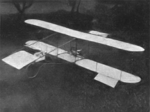 | Histoire résumée | [Traduction libre Flight 27 aout 1910] PLANEUR BIPLAN Nous venons de terminer un planeur biplan et joignons des photos qui, nous l’espérons, intéresseront les lecteurs de votre journal inestimable. Les plans principaux ont une envergure de 30 pieds (~9.15 m), et la machine une longueur totale de 24 pieds (7.32 m). ; la surface alaire est de 260 pieds² (24.15 m2). Le biplan est construit entièrement en frêne et la partie intéressante de la machine est la commande de vol. Le gouvernail est actionné par les pieds, la gouverne de profondeur par un mouvement vers l’avant du volant et les ailerons par rotation du volant. La gouverne de queue est également réglable par un levier spécial ; toutes les entretoises sont profilées et l’ensemble de la machine peut être pliée en deux pour les besoins de transport. Quelques expériences préliminaires ont montré que la solidité de la machine et une grande stabilité longitudinale et latérale. Il y a deux ou trois très bonnes collines dans les environs de Keynsham, qui se situe a quatre miles de Bristol et, comme nous comprenons que le Bristol Aero Club ont un planeur mais pas de terrain, il est possible que l’une de ces collines puisse répondre à leurs besoins. Keynsham Eldon et Gilbert BUSH | ||||||