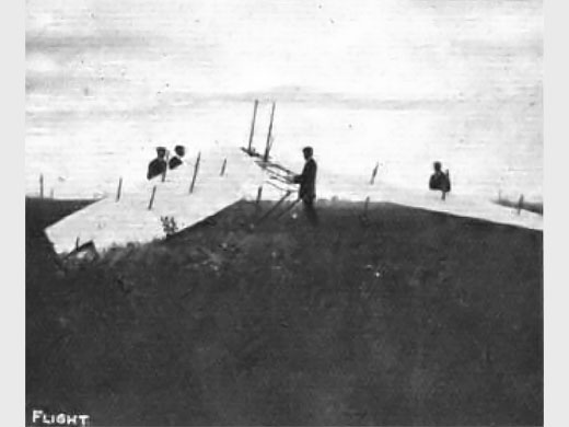 | Histoire résumée | Traduction libre Flight No 87, 27 août 1910> Le planeur Locke Je vous ai promis, dans une lettre que vous avez publié il y a quelques temps, de vous parler de mes expériences avec un planeur en cours de construction basé sur le même concept que la machine du lieutenant Dunne. Le planeur est désormais achevé et j'ai tenté un vol le mardi 26 juillet à Barking. Le vent n'était toutefois pas assez fort et tant la construction de la machine que la nature du sol n'ont pas permis de décoller, n'ayant ainsi aucun succès à signaler. Mais avec le temps et la patience, de grandes choses peuvent encore arriver. La photo a été prise lors des essais du 26. Elle donne un idée de la configuration générale du planeur. Les ailes ont un angle 90 degrés entre elles et une envergure totale de 37 pieds. La personne à l'air ébouriffé debout dans l'angle arrière est moi-même, les autres personnes étant des amis venus m'aider. Mon associé m'ayant aidé à construire le planeur n'est pas présent car c'est lui tenait l'appareil photo. J'espère pouvoir vous donner des nouvelles intéressantes prochainement. Chingford J.C. Locke | ||||||