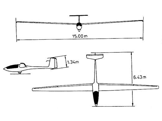 The Pik-20 was designed as a 15 m. racing class, all-fiberglass sailplane with water ballast, retractable gear and 90 degrees trailing edge flaps for landing. The B model added flap-aileron interconnection and more water, which could be retrofitted to earlier models. Carbon fiber spars were optional on early B models, but later became standard. Ingo Renner won the 15 m. class at the 1976 World Championships at Rayskala, Finland in a B-model, and others finished 2nd, 3rd and 5th. The Pik-20D added Schemmpp-Hirth air brakes and full-span ?flaperons? which operate differentially for roll control and deflect from ?12 degrees to +16 degrees for cruise or approach control. The ?20D features carbon fiber spar caps and carbon reinforcement strips ar critical locations in the fiberglass monocoque fuselage. On later production models the nose profile was sharpened, the tail moved 5 inches forward and fuselage fairings recontoured to reduce drag. The PIK-20E is a D sailplane with a retractable Rotax two-cylinder two-cycle engine. A manual crank handle requires about 15 turns to deploy or retract the engine. Specifications are given for the ?20D, with the ?20E in parenthesis. The ?20B and ?20D have ATC.