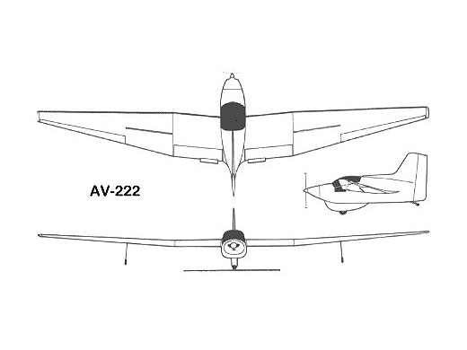 | Histoire résumée | Après avoir dessiné et fait voler l'AV-221, Charles Fauvel a développé un modèle un peu simplifié (bien que restant assez difficile à construire), désigné AV-222. Plus légère et d'une structure différente, cette aile volante disposait d'une voilure en trois parties (la partie centrale étant dépourvue de dièdre) pourvue du profil Fauvel F2 ou d'un laminaire Wortmann (en option), et pouvait être équipée au choix du train d'atterrissage classique ou monotrace (ce dernier étant préconisé car plus léger, plus économique et plus facile à installer). L'appareil pouvait supporter des moteurs Rectimo (40 ch) ou Limbach (60 ch) à base Volkswagen, ou encore des 2-temps Rotax. Le réservoir de carburant pouvait contenir 30 litres (45 en option). Plusieurs liasses de plan de l'AV-222 furent vendues en France, Allemagne, Italie, Suède, Royaume-Uni et aux Etats-Unis. La première aile volante AV-222, construite par Hans Martinson et immatriculée SE-XSL, a volé en Suède en mai 1992, tandis que plusieurs constructions se poursuivaient en France, en Allemagne et aux Etats-Unis. En France, Jean-Claude Néglais a fait voler son AV-222 pour la première fois en Juillet 2000.