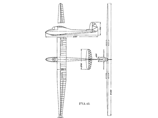 | Histoire résumée | Au printemps de 1938, on a demandé à la FVA de participer au développement d'un planeur pour les Jeux olympiques de 1940. Le FVA-13 "Olympia-Jolle" a été développée à la suite d'une thèse de Herbert KAULBACH, développement du FVA-9 dont les qualités de vol étaient reconnues. Deux prototypes devaient être construits, mais les délais impartis étant très courts (ils devaient être achevés pour le 1er janvier 1939), la FFG [Flugtechnische FachGruppe] a décidé de construire le FVA-13 V1 et de faire fabriquer le deuxième prototype V2 par le FAG de Darmstadt. On sait que la commission internationale a finalement sélectionné le DFS «Meise» comme planeur olympique, et les FVA-13 V1 et V2 sont restés à l'Akaflieg Aachen. Ils ont été détruits pendant la guerre. | ||||||||