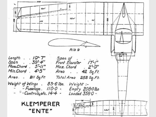 | Autres sources | The Klemperer Ente, Flight 23 novembre 1922 p 685-686. Texte + plan 3 vues Flight, 12 octobre 1922 p 589. Photo. |