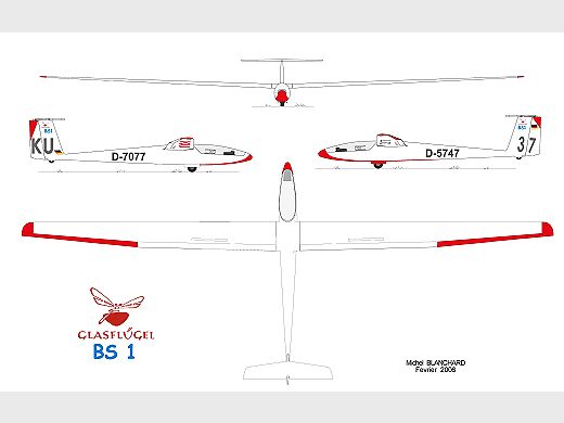 | Infos techniques | Le BS-1 de série a des volets de courbure, des aérofreins, une roue rétractable et un parachute de queue (les deux prototypes n'avaient pas d'AF). Empennage en T. Stabilisateur pendulaire. La charge alaire donnée est la valeur maximale. Une version BS-1b a été construite. | ||||||||