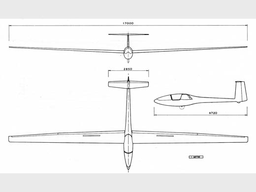 [Glasflügel Sailplanes, Binz 2022] Plan 3 vues du Glasflügel H-401 Kestrel
