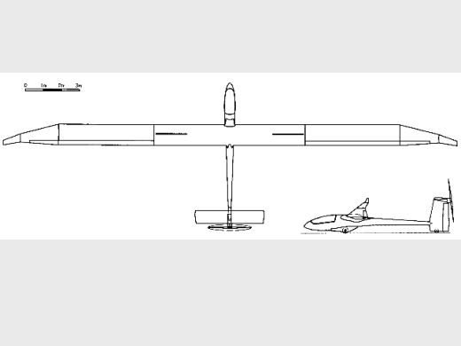| Infos techniques | Solar energy powered sailplane. Empennage en T. The structural design of icaré 2 is a combination of CFRP (carbon) and honeycomb sandwich in all main parts of the structure, where all control surfaces and the wing lower side have been covered with fabric. max. climb rate 2 m/s best glide ratio 36 -- max. solar power 3.6 kW efficiency of solar cells 17 % battery mass 27 kg battery capacity 2.9 kWh resulting range ca. 60 km mean battery voltage 135 V max. engine power 12 kW | ||||||