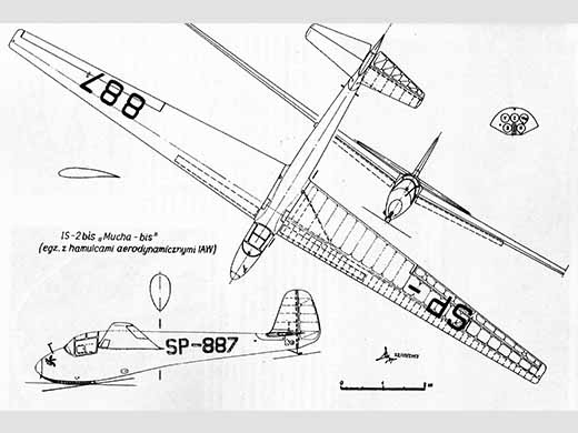 | Histoire résumée | Das IS (Instytut Szybownictwa - Segelfluginstitut) in Bielsko fing 1946 an 4 Seglertypen zu arbeiten an: Hochleistungssegler (IS-1 "Sep"), Trainings-Hochleistungssegler (IS-2 "Mucha"), Übergangssegler (IS-A "Salamandra" - rekonstruiert auf der Basis eines Vorkriegsexemplares das im Versteck den Krieg überstanden hat) und Schulgleiter (IS-3 "ABC"). Auf Basis der aerodynamischen Überlegungen der IS-1 "Sep" ist der Trainings-Hochleistungssegler IS-2 "Mucha" entstanden. Das Projekt wurde von F. Kotowski und J. Kaniewska geführt. Das Prototyp wurde am 24 April 1948 auf dem Flugplatz von Bielsko durch P. Mynarski eingeflogen. Auf der "Mucha" hat die erste Nachkriegsgeneration der polnischen Segelflieger in den Jahren 1950-55 erste Hochleistungs-Erfahrungen gesammelt. Der IS-2 ist zwischen 1948 und 1950 intensiv in Serie gebaut worden, so dass er nach und nach die alten deutschen Segler im Nachkriegspolen ersetzen konnte. Im wahrsten Sinne des Wortes revolutionierte die "Mucha" die polnische Segelfliegerei. Auf dem Segler haben die polnischen Piloten erste, 1949 eingeführte FAI Diamantauszeichnungen erflogen. Auch lernten die Piloten auf der "Mucha" Wolkenflüge, die so sehr bei den späteren Wettbewerbsflügen halfen. Obwohl die "Mucha" kein Hochleistungssegler war, hat sie auch zwei Weltrekorde erflogen. Würdiger Nachfolger der "Mucha" ist für kurze Zeit die "Mucha 100" geworden, nur für kurze Zeit weil die SZD-8 "Jaskółka" auf den Markt kam, die zum wiederholten Male die polnische Segelfliegerei revolutionierte. IS-2 Mucha wurde in drei Varianten gebaut. Erste Prototyp IS-2 "Mucha" - 1 Exemplar; IS-2 "Mucha bis" - 20 Exemplare und zum Schluss IS-2 ter "Mucha ter" - 116 Exemplare. | ||||||