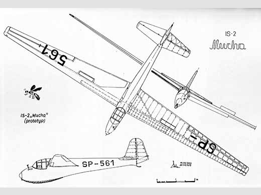 | Histoire résumée | Das IS (Instytut Szybownictwa - Segelfluginstitut) in Bielsko fing 1946 an 4 Seglertypen zu arbeiten an: Hochleistungssegler (IS-1 "Sep"), Trainings-Hochleistungssegler (IS-2 "Mucha"), Übergangssegler (IS-A "Salamandra" - rekonstruiert auf der Basis eines Vorkriegsexemplares das im Versteck den Krieg überstanden hat) und Schulgleiter (IS-3 "ABC"). Auf Basis der aerodynamischen Überlegungen der IS-1 "Sep" ist der Trainings-Hochleistungssegler IS-2 "Mucha" entstanden. Das Projekt wurde von F. Kotowski und J. Kaniewska geführt. Das Prototyp wurde am 24 April 1948 auf dem Flugplatz von Bielsko durch P. Mynarski eingeflogen. Auf der "Mucha" hat die erste Nachkriegsgeneration der polnischen Segelflieger in den Jahren 1950-55 erste Hochleistungs-Erfahrungen gesammelt. Der IS-2 ist zwischen 1948 und 1950 intensiv in Serie gebaut worden, so dass er nach und nach die alten deutschen Segler im Nachkriegspolen ersetzen konnte. Im wahrsten Sinne des Wortes revolutionierte die "Mucha" die polnische Segelfliegerei. Auf dem Segler haben die polnischen Piloten erste, 1949 eingeführte FAI Diamantauszeichnungen erflogen. Auch lernten die Piloten auf der "Mucha" Wolkenflüge, die so sehr bei den späteren Wettbewerbsflügen halfen. Obwohl die "Mucha" kein Hochleistungssegler war, hat sie auch zwei Weltrekorde erflogen. Würdiger Nachfolger der "Mucha" ist für kurze Zeit die "Mucha 100" geworden, nur für kurze Zeit weil die SZD-8 "Jaskółka" auf den Markt kam, die zum wiederholten Male die polnische Segelfliegerei revolutionierte. | ||||||