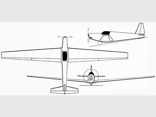 | Infos techniques | Not only has Senor Lanzalone designed and built the engine for it - a 30hp Lanzalone two-cylinder two-stroke inverted inline motor of 700cc - he has evolved his own special alloy for the construction of the airframe. This is known as Alcusing, and consists of aluminium with portions of copper, nickel, magnesium, silicon and chrome; the two-blade variable pitch propeller is also made of this material. The Aulanz is a conventional low-wing monoplane of semi-monocoque Alcusing structure, with the engine in the nose and a retractable rubber-sprung monowheel under the wing leading edge, plus a tailskid. The total fuel capacity is 20 litres (4.4 Imp gallons). By the spring of 1973 the prototype's fuselage and tail unit were completed, and construction of the remainder had been proceeding slowly, not surprisingly considering the amount of work that must have been involved with the engine and the Alcusing alloy. | ||||||