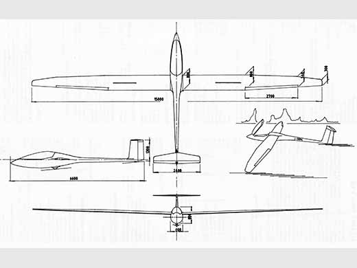 statiquement mais n'a jamais volé. La méthode de construction, en dépit de sa simplicité et de son économie évidentes, ne permettait pas de réaliser les profils avec suffisamment de précision et le temps de travail pour la construction estimé à 1800-2000 heures avait de quoi décourager le constructeur amateur. |