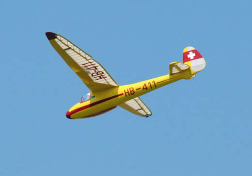 Date de la construction : 2005 Échelle : 1:3 Envergure : 475 cm Profil : Göttingen 693 Poids : 9 kg Charge alaire : g/dm2 Décoration choisie : HB-411 (jaune et rouge)