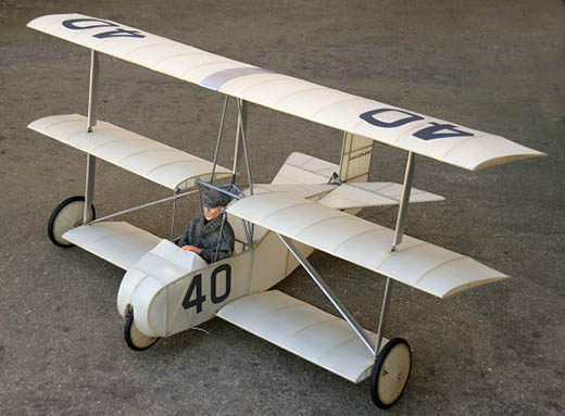 | Date de la construction : février à mai 2011 Échelle : 1:5 Envergure : 110 cm Profil : Clark Y. Poids : 1830 g Charge alaire : 49 g/dm2 Décoration choisie : Toile vernie. Fonctions RC : Incidence intégrale de l'aile intermédiaire. Profondeur et direction. |