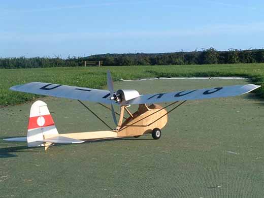| Date de la construction : 2005 Échelle : Envergure : 1220 mm Profil : Göttingen 549 Poids : 230 g Charge alaire : g/dm2 Décoration choisie : |