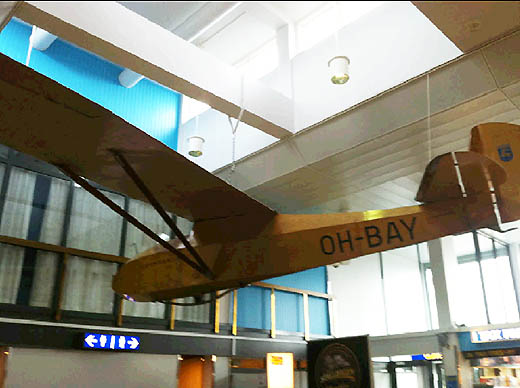 | Machine suspendue dans le hall de l'aéroport de Marienhamn. |